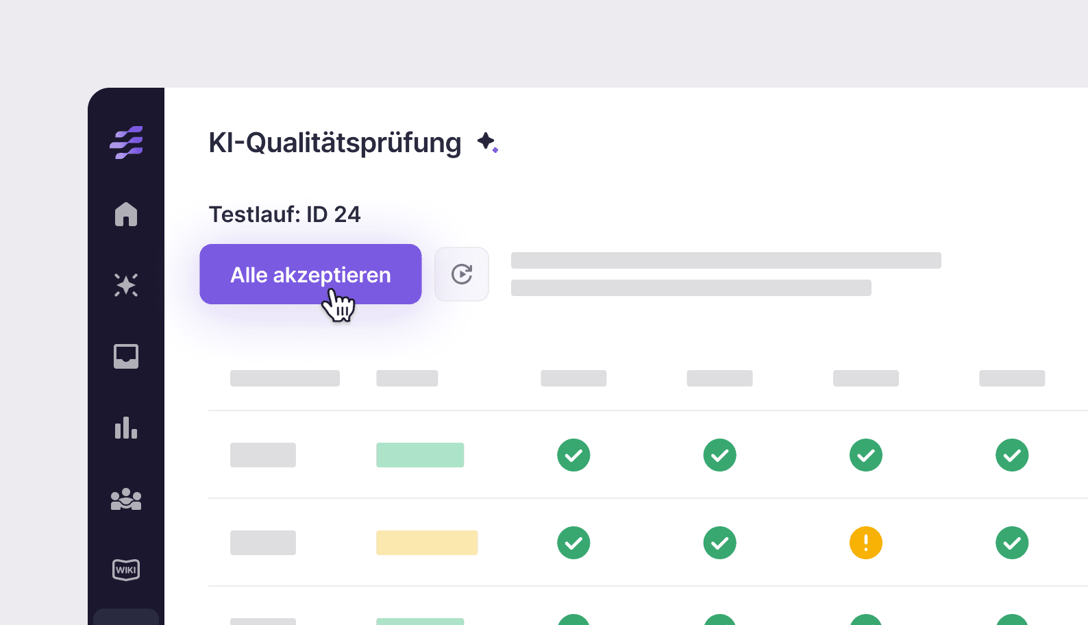 Testen, überwachen und validieren Sie KI-Leistung kontinuierlich. Qualitätssicherung stellt sicher, dass Automatisierungen stabil, korrekt und regelkonform arbeiten.