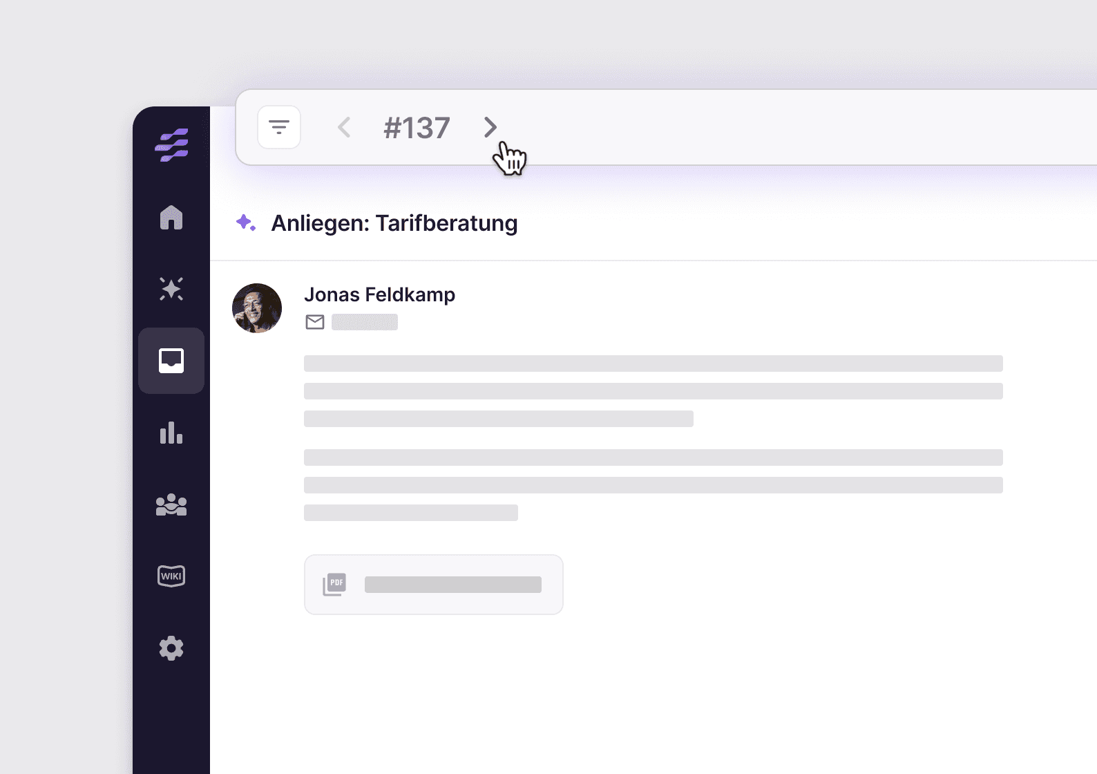 Intelligentes Routing verteilt Tickets automatisch nach Anliegen, Priorität und Verfügbarkeit. Agenten arbeiten fokussierter, vermeiden manuelle Sortierung und bearbeiten genau die Tickets, für die sie am besten geeignet sind.
