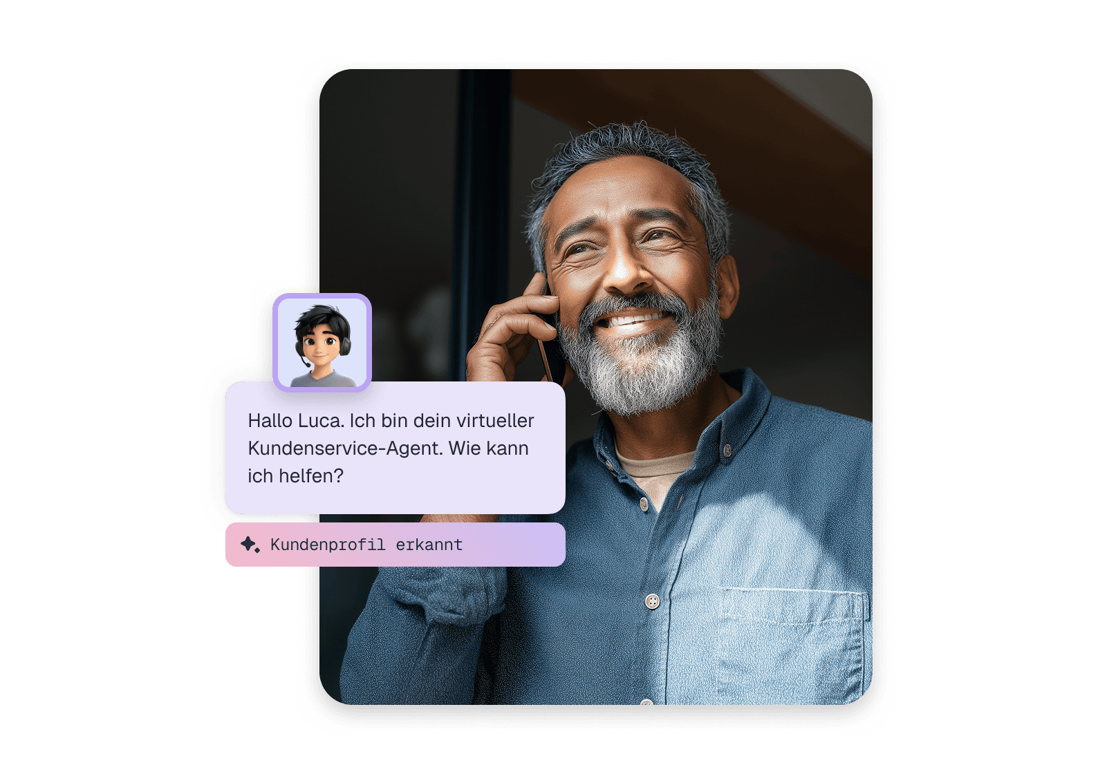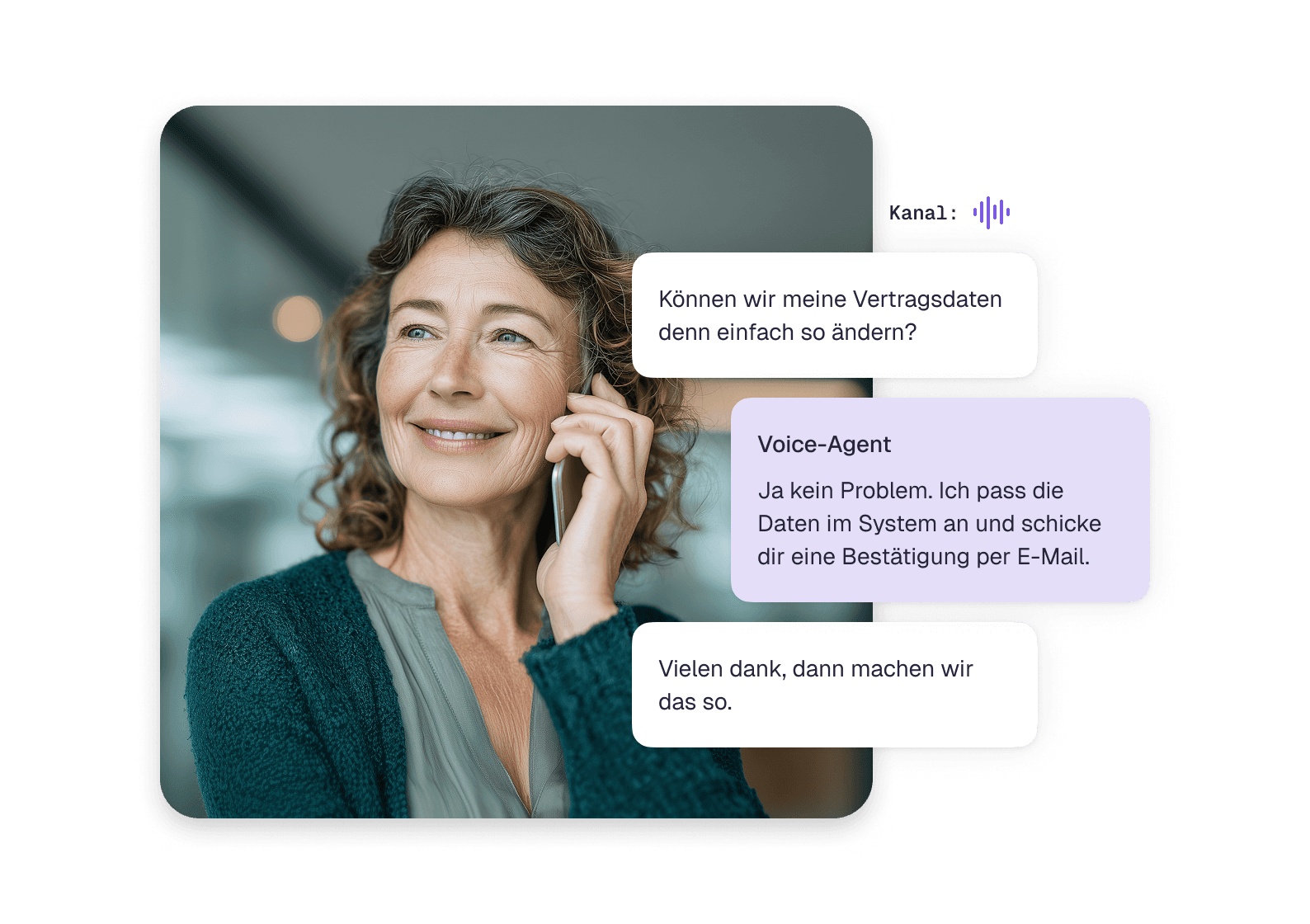 Natürlich geführte Gespräche ermöglichen Kunden, ihr Anliegen frei zu formulieren, Informationen zu erhalten und Prozesse anzustoßen. Rund um die Uhr, ohne Warteschleifen oder Sprachmenüs.